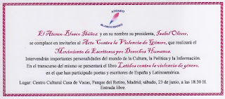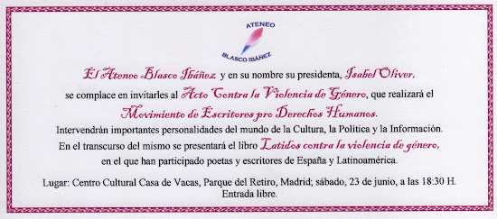 "El sábado 23 de junio, el Movimiento de Escritores pro Derechos Humanos del Ateneo Blasco Ibáñez, se desplazó desde su sede, en Valencia, a Madrid para realizar un acto contra la violencia de género.